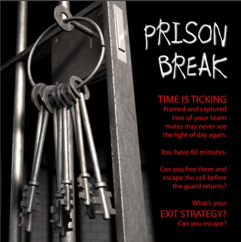Time is ticking. Framed and captured two of your team mates may never see the light of day again. You have 60 minutes. Can you free them and escape the cell before the guard returns. Whats your EXIT STRATEGY? Can you escape?